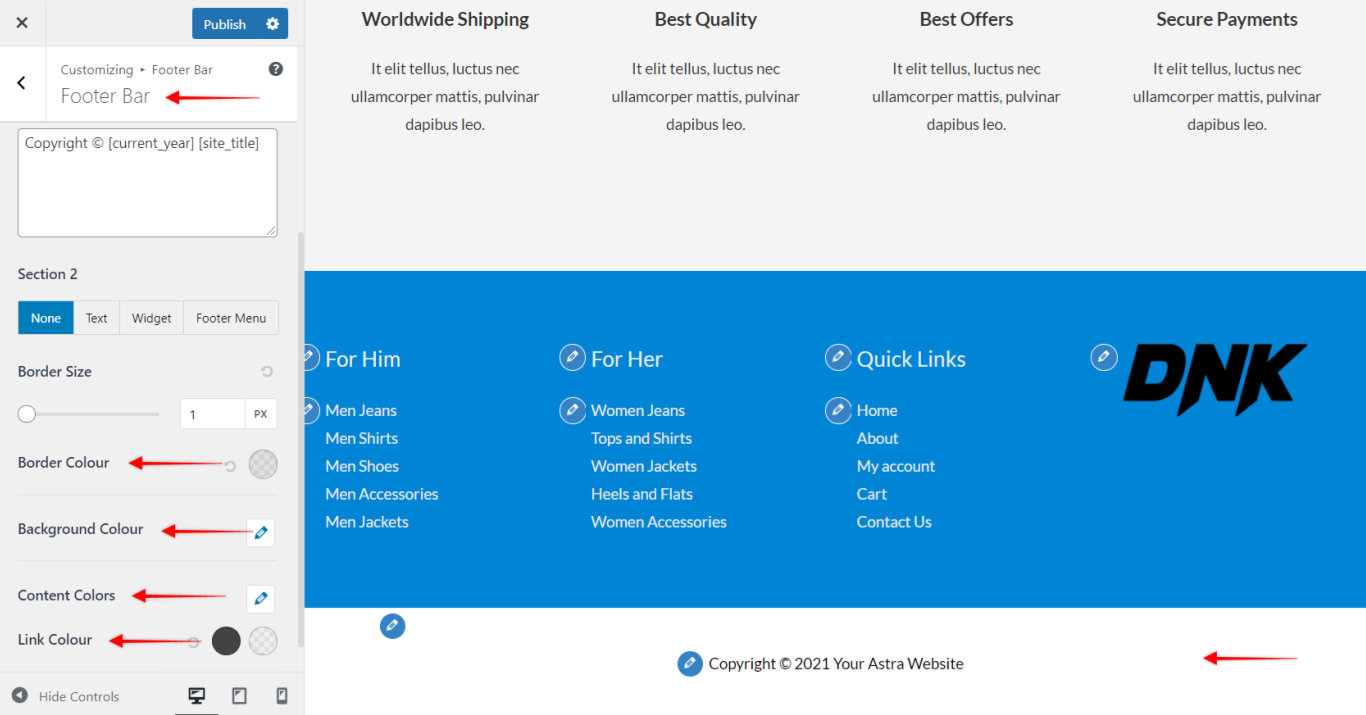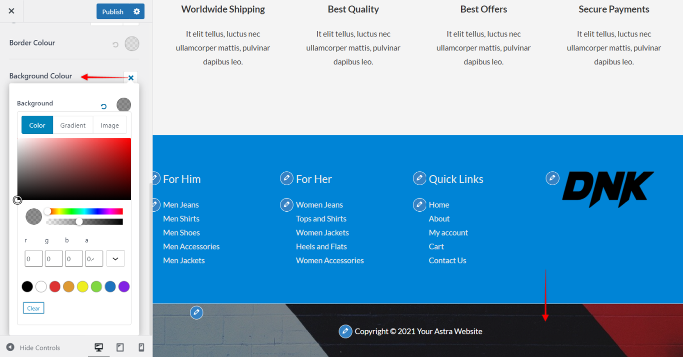 / Documentation / Colors/Background and Typography options for Footer Bar (Old Astra Footer)