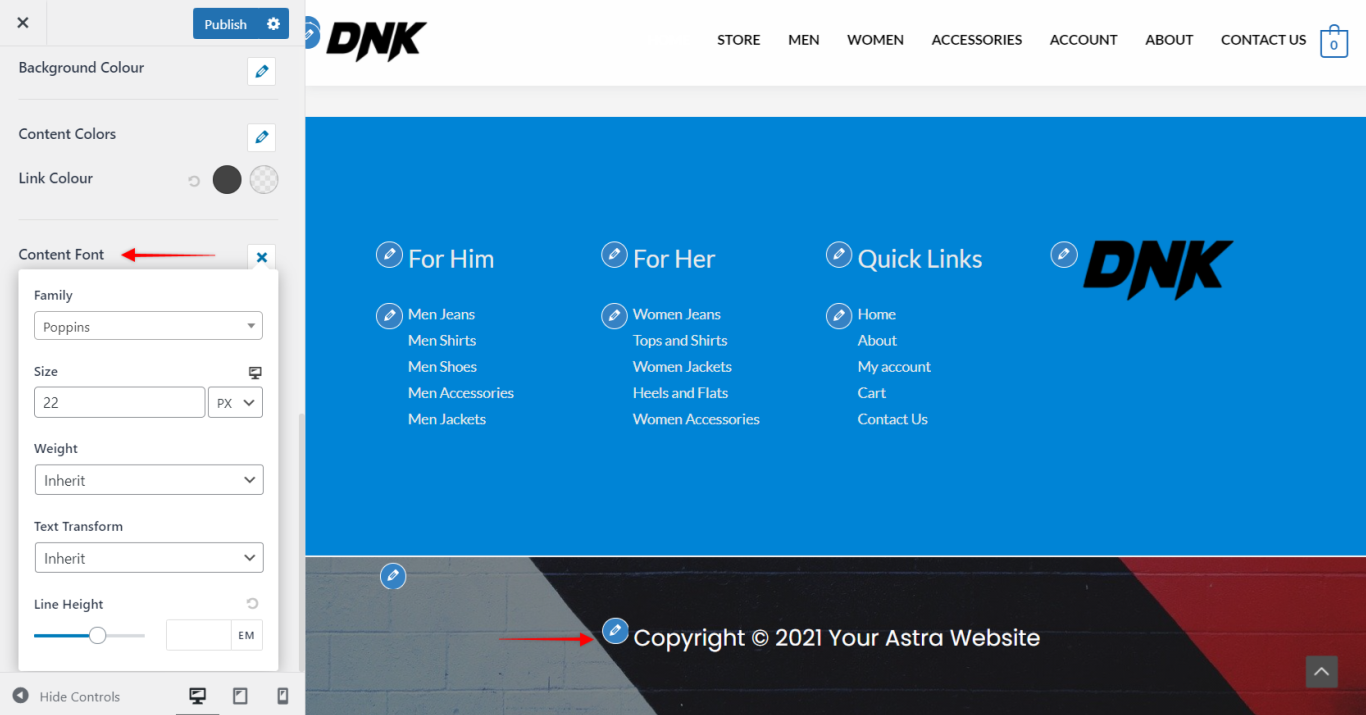 Additional dedicated options for Footer will be available with Typography module available with Astra Pro.