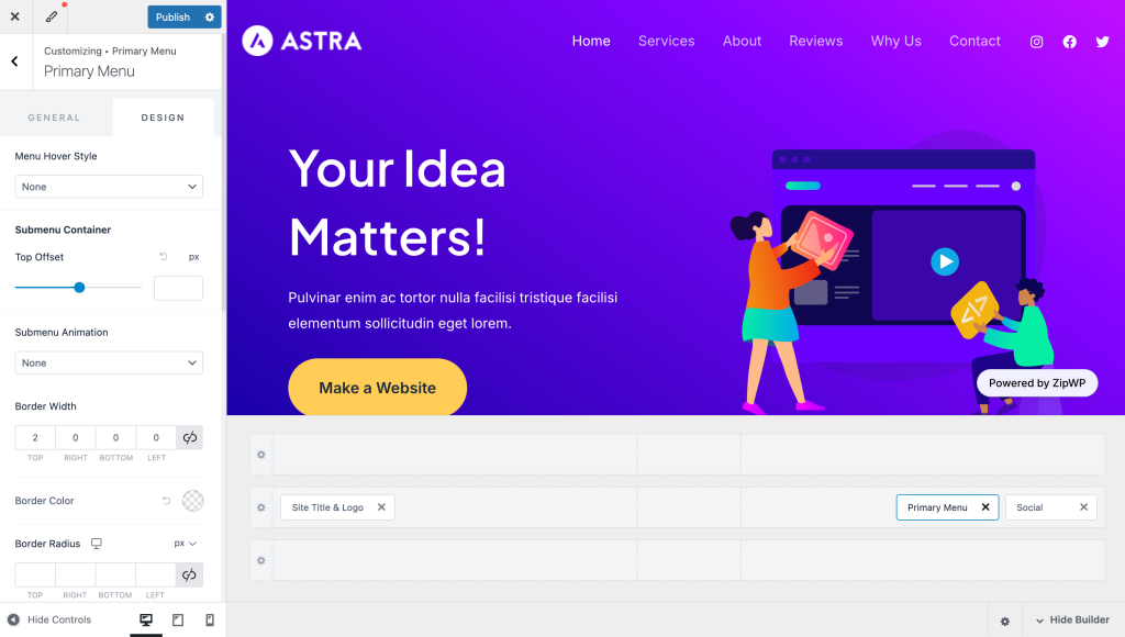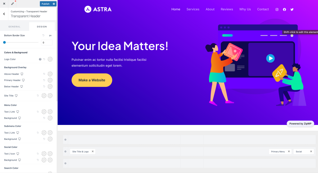With Astra Pro, you can access additional elements such as sticky headers, language switchers, and more design options overall.