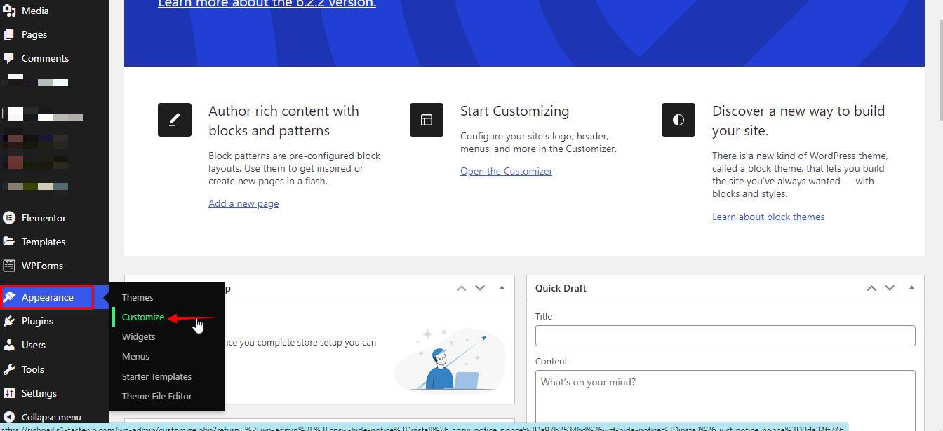 Step 1: Navigate to Appearance>Customize